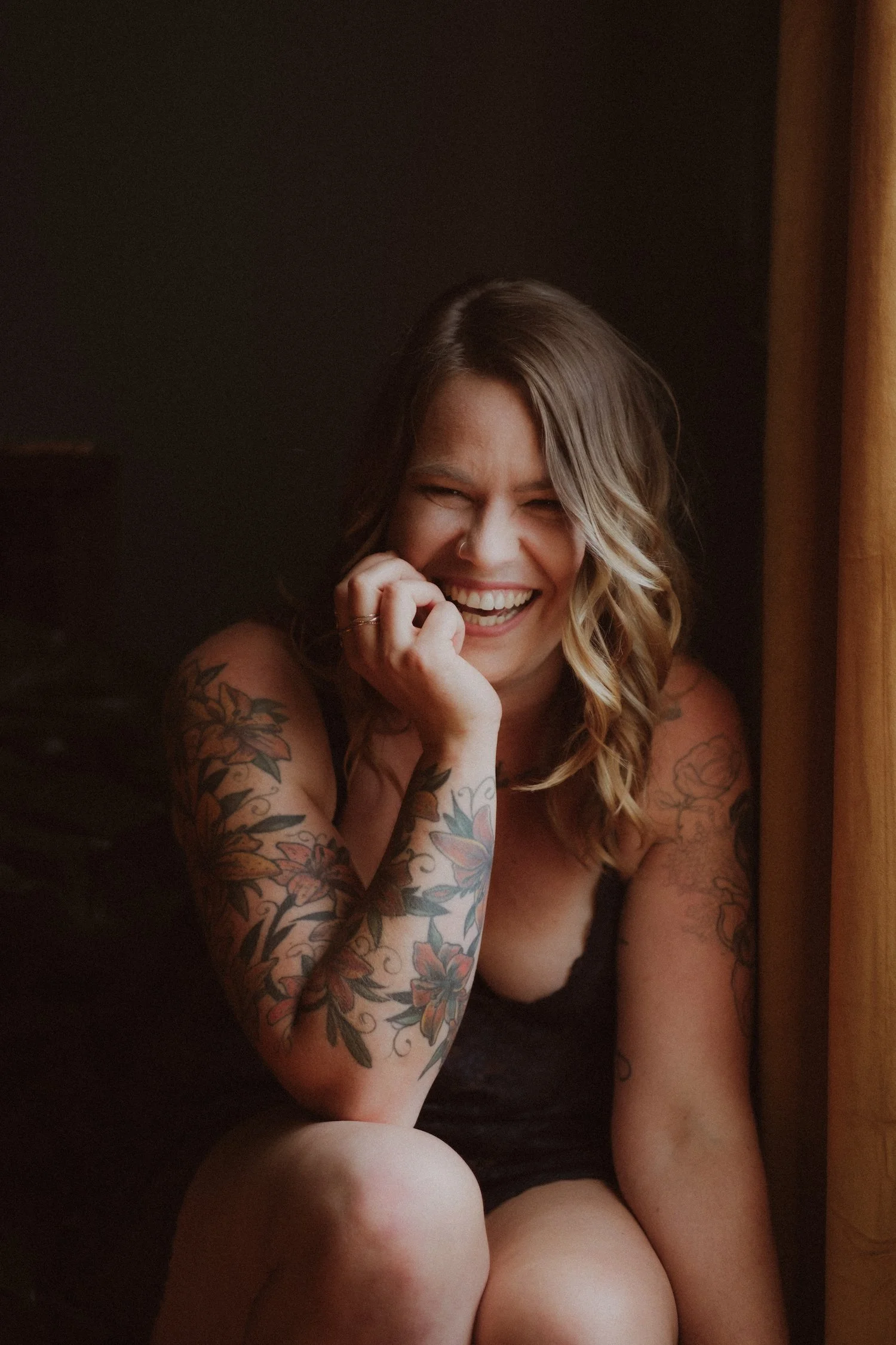 Most people we work with have NEVER done a shoot like this before, and a big part of our job is helping you relax every step of the way. But we can assure you... Boudoir Sessions are fun! We love to laugh throughout our sessions. It's a collaborative, silly, and empowering experience. After your stylist does your hair and makeup we will help you choose your outfits, show you some ways to pose your body, and be your hype team throughout the session!
