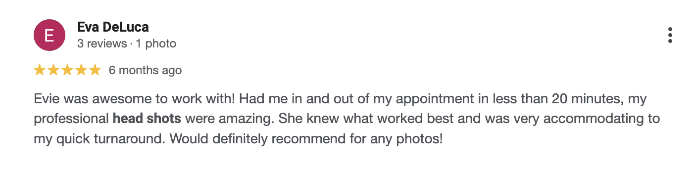 You will either be working with me or my associate Photographer, Evie Hansford. Evie is currently our primary headshot photographer, so you will likely be working with her!