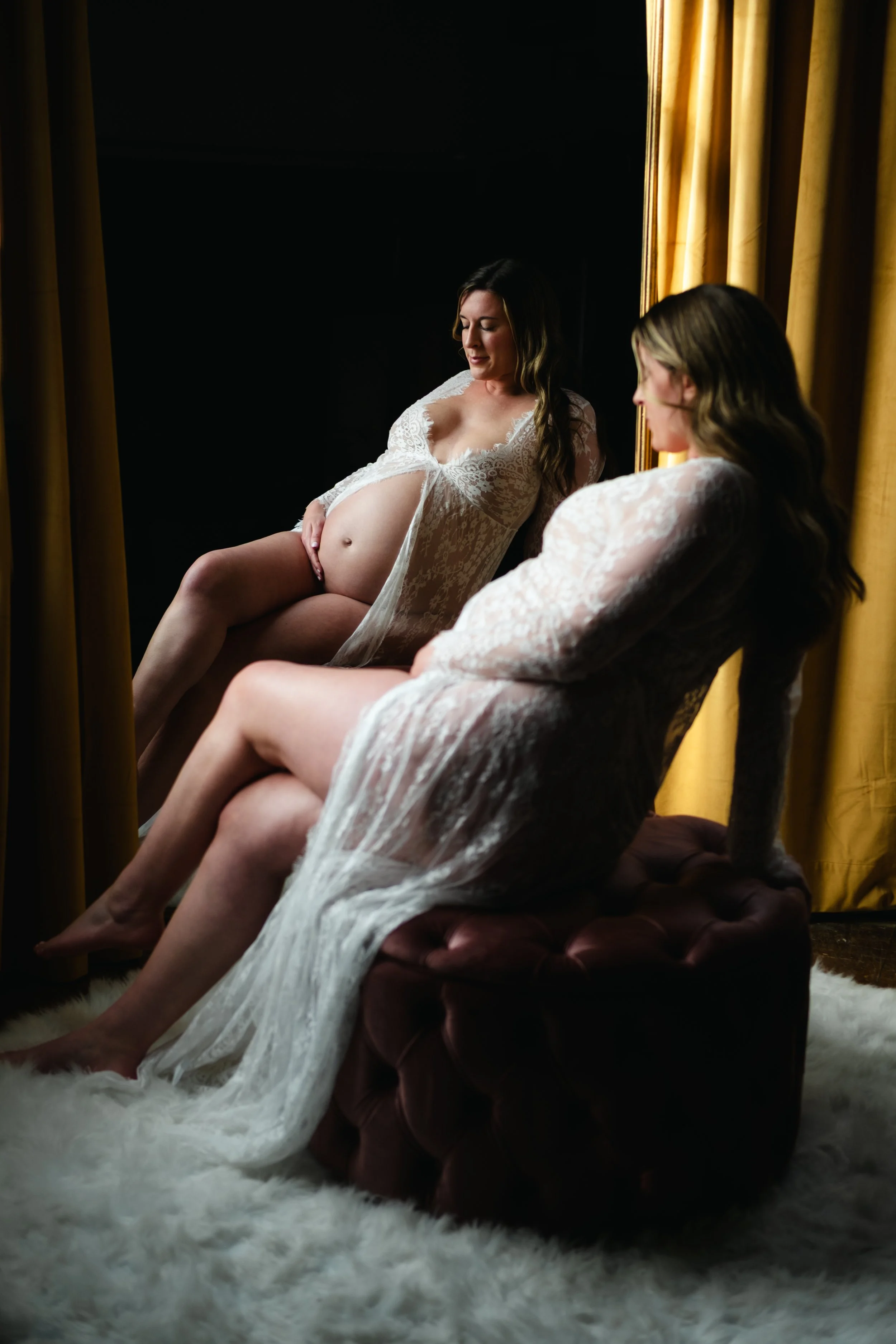 Most people we work with have NEVER done a shoot like this before, and a big part of our job is helping you relax every step of the way. But we can assure you... Boudoir Sessions are fun! We love to laugh throughout our sessions. It's a collaborative, silly, and empowering experience. After your stylist does your hair and makeup we will help you choose your outfits, show you some ways to pose your body, and be your hype team throughout the session! We know you’re carrying a little one, so we also make sure to take ample breaks, make sure you are comfortable & stay hydrated!